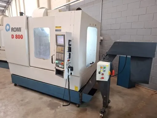 Este Centro De Usinagem Cnc Romi D800 4 Eixo usado e à venda, representa uma oportunidade única para adquirir uma máquina de alto desempenho a um custo acessível.