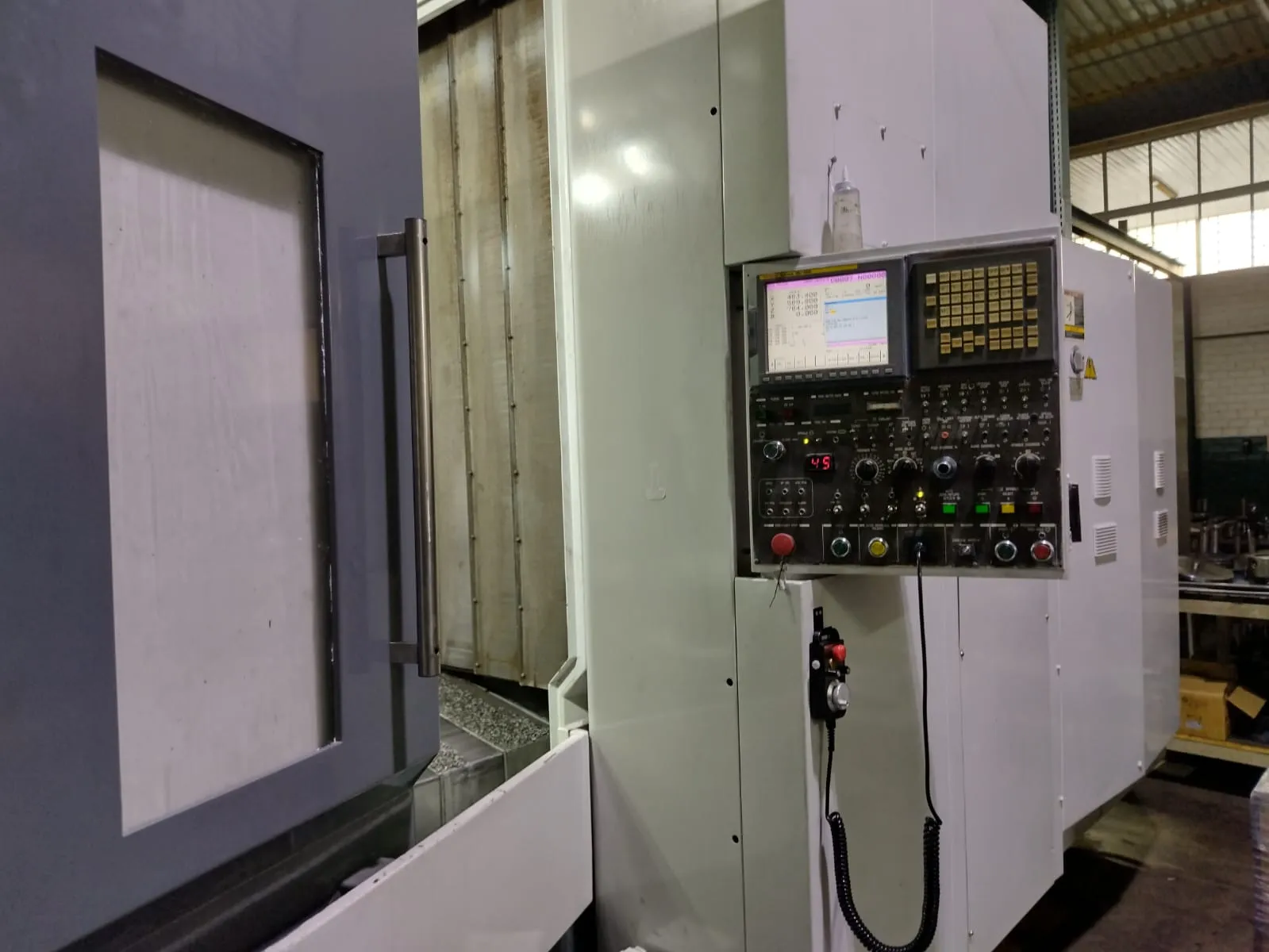 Uma característica notável deste centro de usinagem é o seu comando Fanuc 18i-MB, que oferece precisão e controle nas operações.