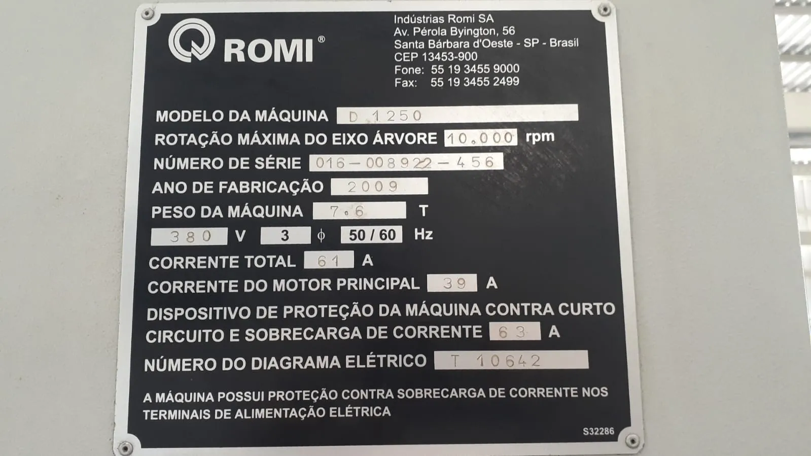 Com fabricação em 2009, esta CNC Romi evidencia a confiabilidade da marca e sua habilidade em fornecer resultados precisos ao longo dos anos.