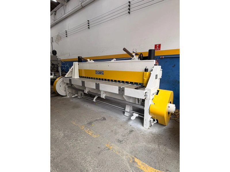 A Guilhotina Mecânica Newton TM9 é um equipamento robusto e confiável, projetado para atender às demandas de corte de chapas metálicas com precisão e eficiência. Com mais de quatro décadas de operação desde 1979, esta máquina demonstra a durabilidade e qualidade construtiva característica da marca Newton, mantendo-se em excelente estado de conservação e funcionamento.