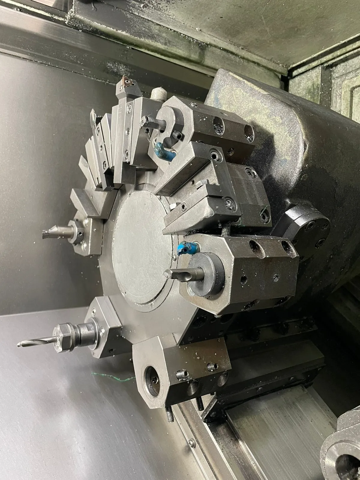Adicionalmente, de fato o Torno CNC Hyundai SKT-21LMS se destaca pelo seu sistema de ferramentas acionadas VDI com 12 ferramentas. Assim isso permite a troca rápida de ferramentas e resulta em um aumento significativo na produtividade.