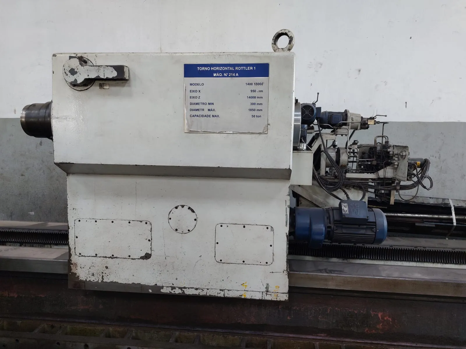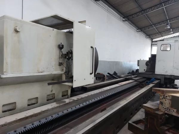 O Torno Pesado CNC Rottler Modelo 1400/13000 é uma máquina de usinagem de grande porte com dois comandos Fagor 8055, um para cada um dos dois carros longitudinais. Sua capacidade de usinagem é impressionante, com uma distância entre pontas de 14.000 mm, um diâmetro sobre o barramento de 1850 mm e um comprimento máximo usinável de 20.000 mm.