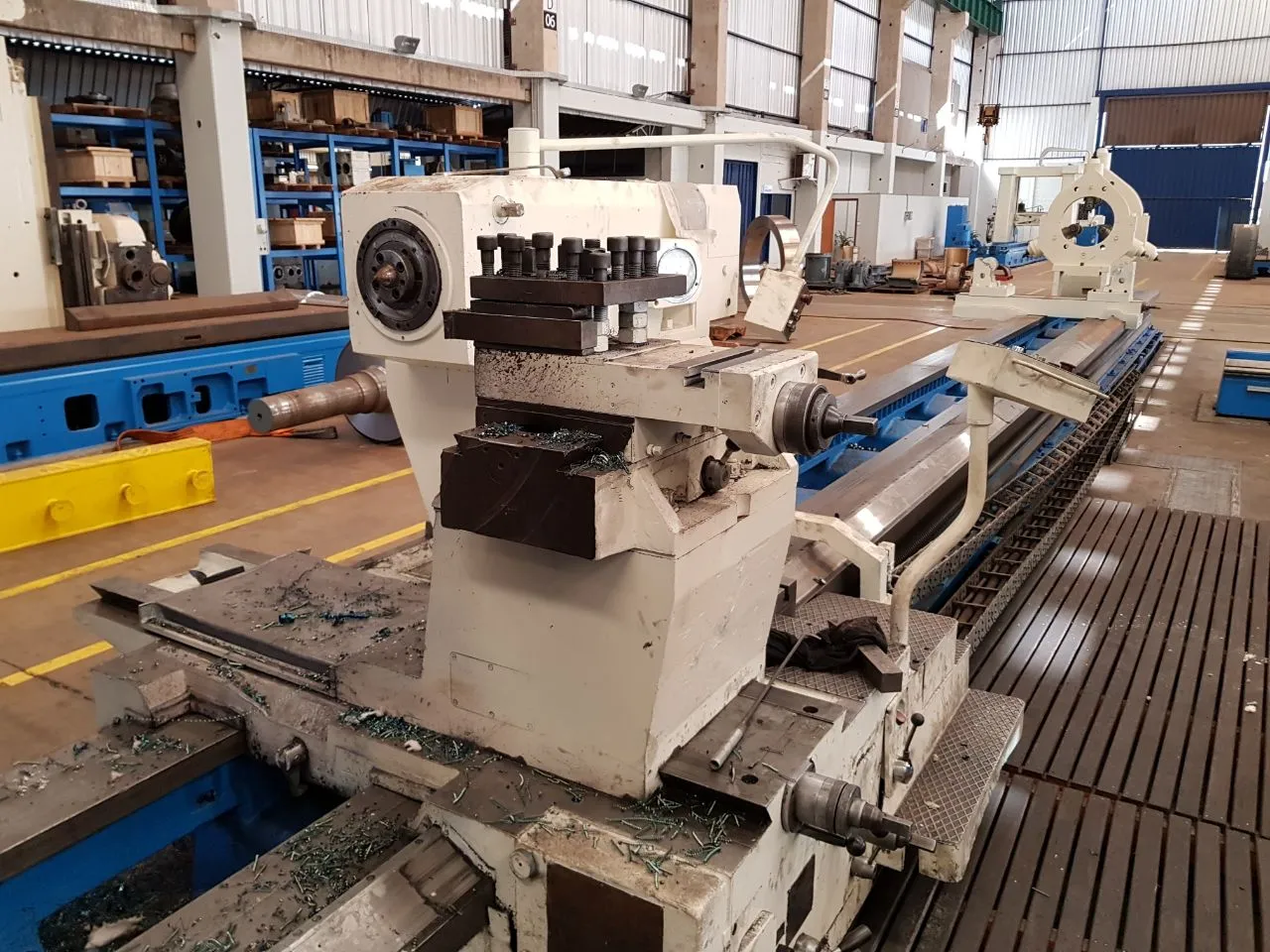 O Torno Pesado POREBA 15000mm, usado a venda é uma máquina de usinagem que combina robustez, confiabilidade e precisão em um único equipamento. Esta máquina usada tem uma história de desempenho comprovado e oferece uma oportunidade única para indústrias que buscam adquirir um torno de alta qualidade a um custo acessível.
